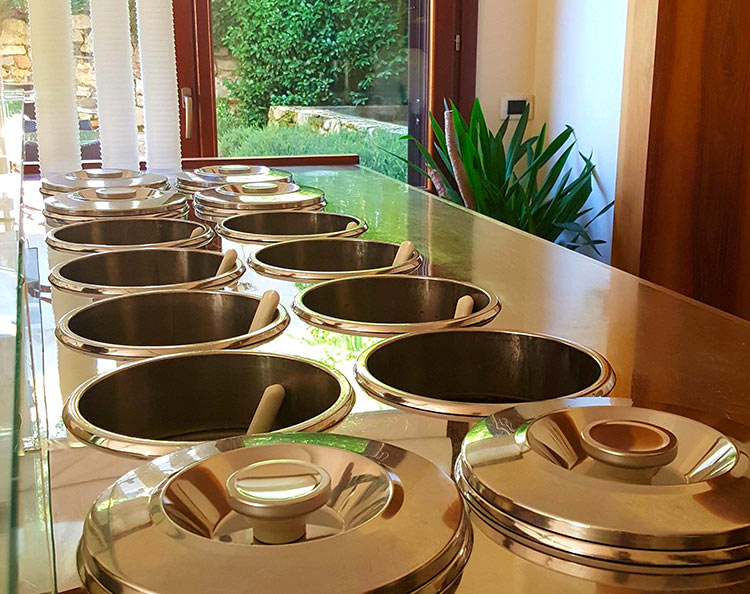 Il nostro gelato è "artigianale" nel vero senso della parola in quanto è il risultato del felice connubio tra l'uso di materie prime fresche e di primissima qualità ed una solida formazione tecnica iniziata con il maestro gelatiere Carlo Pozzi ed il cui aggiornamento continua con i maestri Filippo Zampieron e Federico Maronati. Ciò consente di ottenere un ottimo prodotto senza ricorrere all'uso di addensanti, emulsionanti, gelificanti, coloranti, antiossidanti, conservanti, aromi artificiali, additivi, emulsionanti e stabilizzanti. L'unico elemento presente nel nostro gelato è la genuinità al 100%.